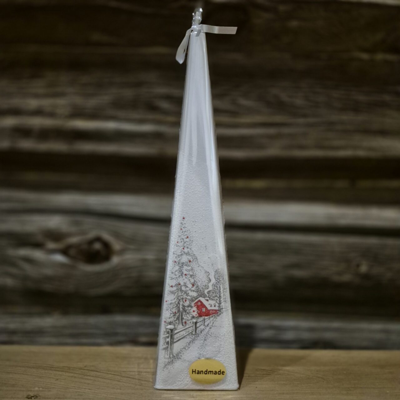Dekorativt pyramidelys med julemotiv.